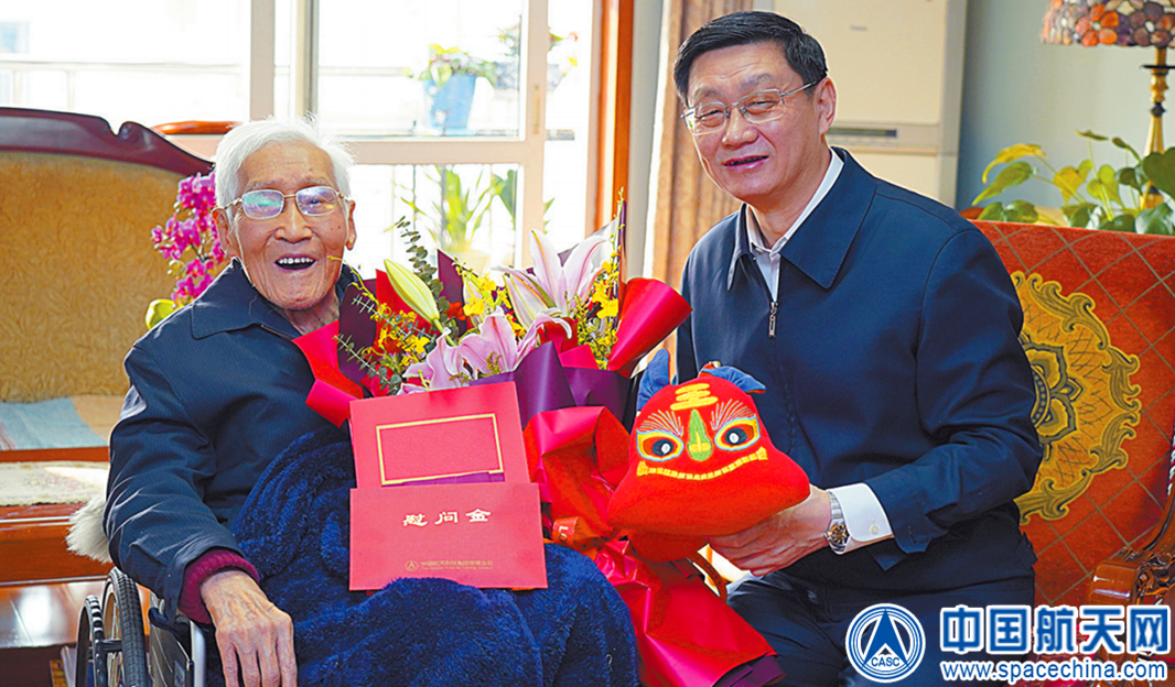 1月7日,中国航天科技集团有限公司党组书记、董事长吴燕生来到 “七一勋章”获得者、两院院士陆元九家中,代表集团公司党组和全体干部职工祝贺他102岁生日快乐。