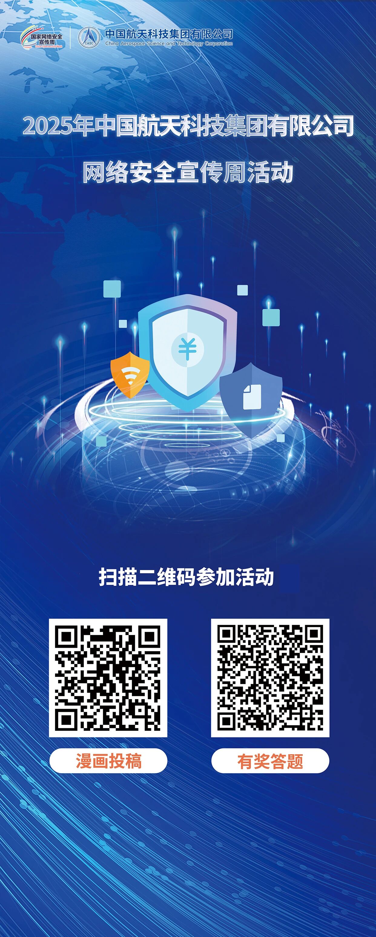 9月15日~21日是国家网络安全宣传周,为深入学习宣传贯彻习近平总书记关于网络强国的重要思想,中国航天科技集团有限公司组织开展“2025年国家网络安全宣传周”系列活动。