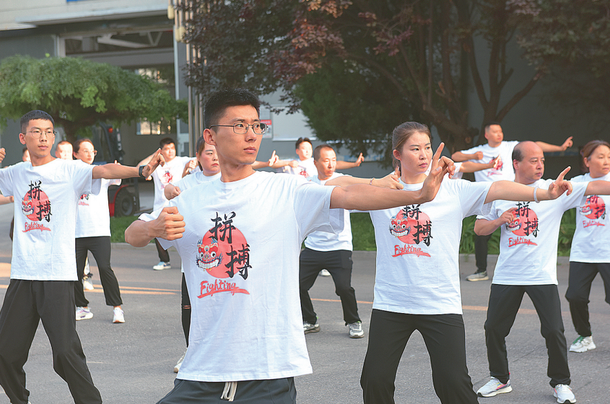图为职工正在进行八段锦健身展示。杨陈毅 摄