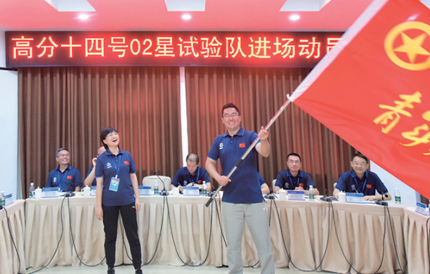 图为高分十四号02星“两总”为青年突击队授旗。吉承伟 摄