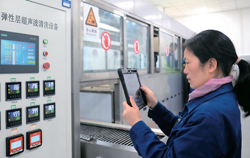 在清洗刷胶等辅助生产环节,自动化同样带来了质量和效率的双提升。接头产品属于发动机的关键部件,界面多、粘接要求苛刻,以往清洗涂胶工序需要手工刷洗涂胶。对此,43所开发了一条全自动可视化的生产线——多界面自动清洗涂胶系统,实现了胶粘剂喷涂、干燥、冷却等全过程自动化控制。“现在只需一两人在电子屏上操作就可以控制整个工序,产品成型精度、界面性能和气密性能明显提升了。”接头组班组长说。