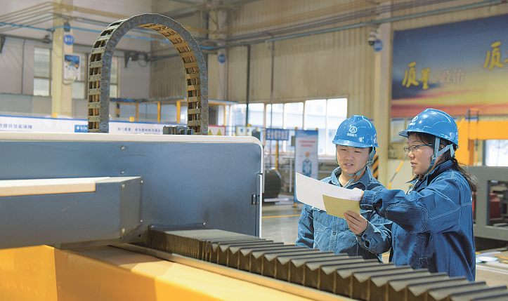 图为一线职工对照生产图纸,严格把控产品质量。杨陈毅 摄