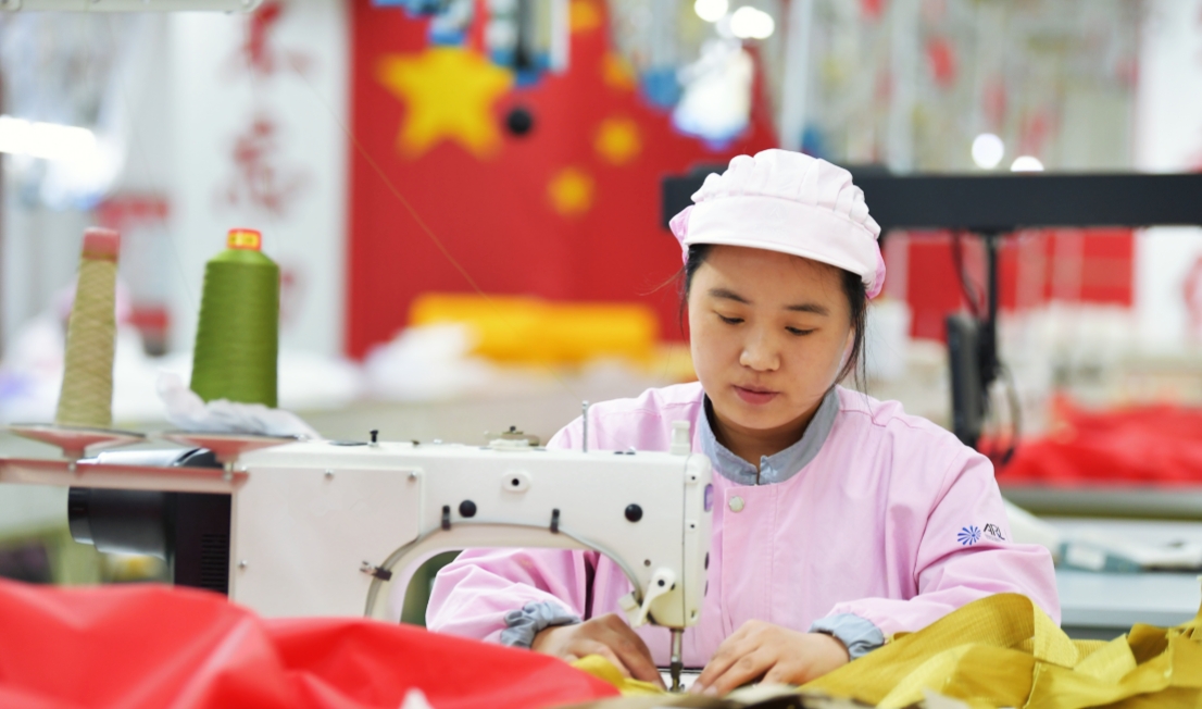 图为降落伞加工人员正在开展伞衣拼缝工作。 董济泽 摄