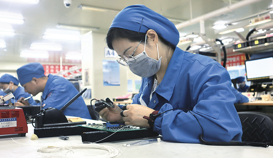 图为无线电装接工正在进行单板装联操作。朱情妮 摄